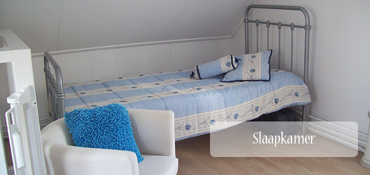 De ruime slaapkamer met tweepersoonsbed (en 1 eenpersoonsbed) bereikt u via een steile trap. De bedden zijn bij aankomst opgemaakt. Handdoeken en keukendoeken zijn aanwezig.